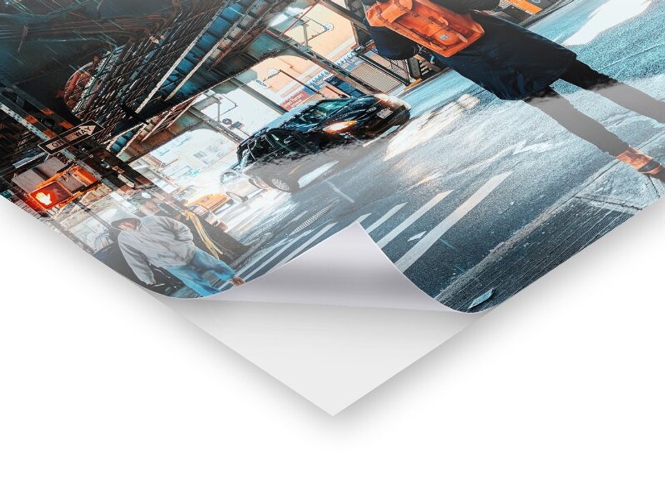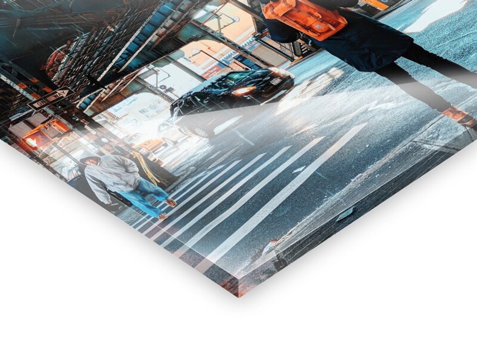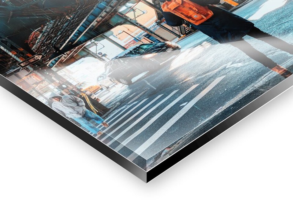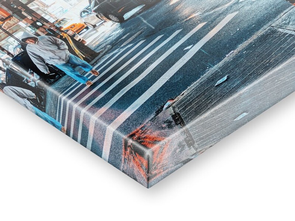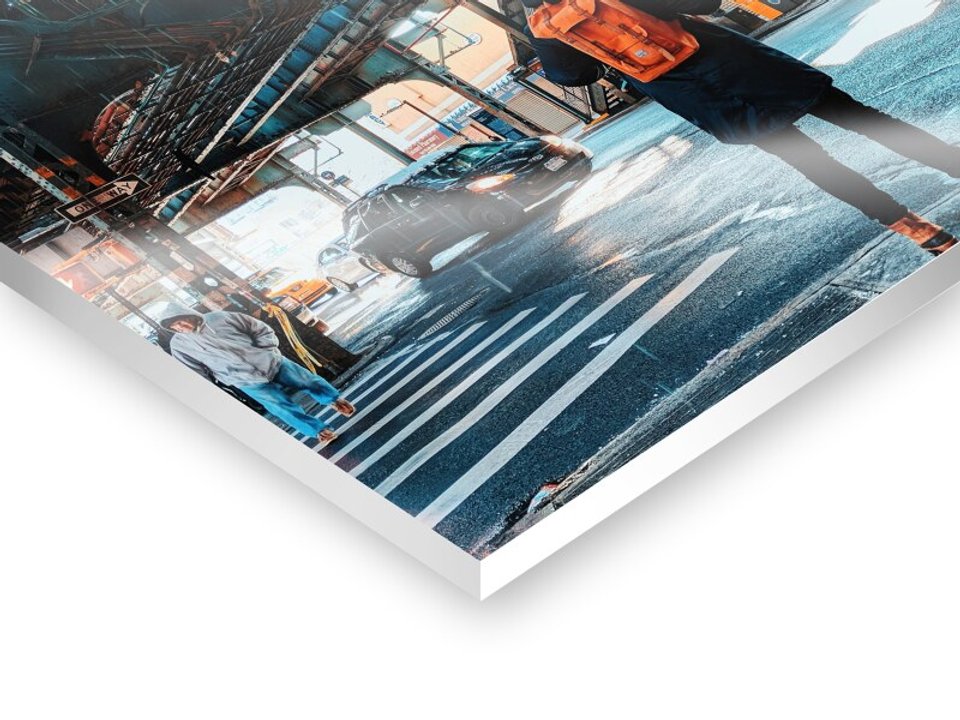 We print your designs with high-quality precision printing equipment that achieve excellent results through continuous color management. Even large-scale designs are perfectly executed with a printing sharpness of up to 1,440 dpi. If the design cannot be enlarged for printed images due to insufficient resolution, you will receive a corresponding notice during the product design process. After the photo printing, the CNC cutting machine precisely cuts the finished print to the desired size. For instance, canvases are stretched perfectly to size on our high-quality Perfect Frame stretcher frames from our own workshop. Any necessary post-processing, such as edge polishing for glass prints or lamination of giant posters, is carried out using state-of-the-art technology while ensuring the highest possible brilliance of your images.