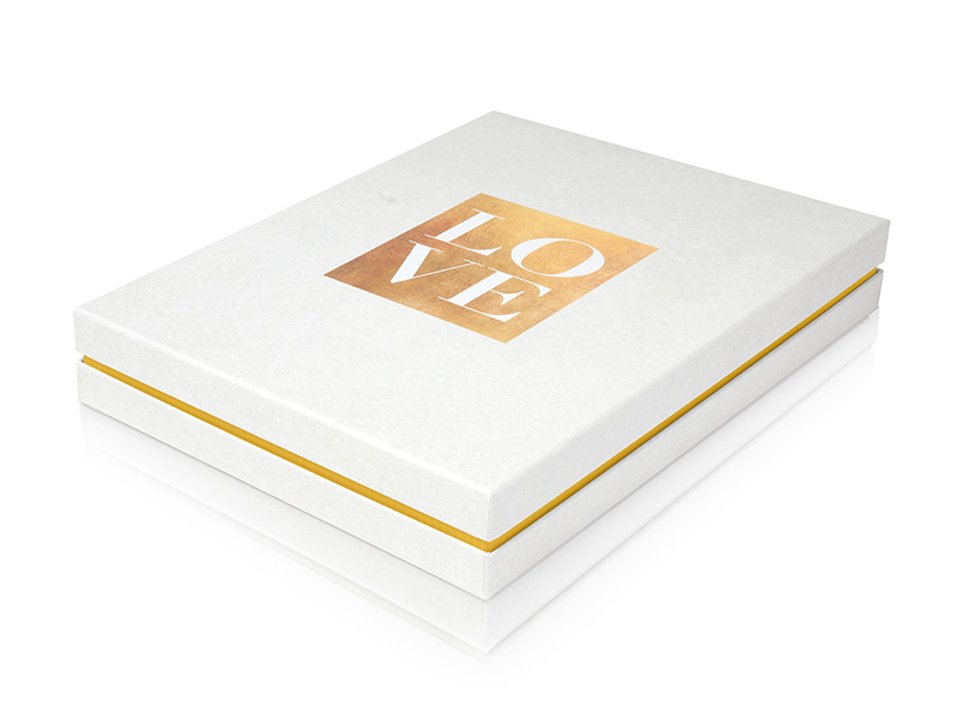 Our box 'Pure Love' is perfect for romantic gifts as it contains a lot of love. By ordering your photo book or calendar directly in the box, you not only save yourself the hassle of wrapping it up, but also contribute to sustainability as the practical box measuring 13" / 9" / 2" (L/W/H) can be reused again and again.