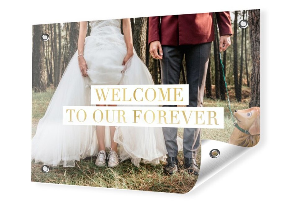 Order a personalized wedding banner from MYPOSTER. The wedding banner can be customized with a photo, an image or a name - quickly and easily in the Collage Configurator